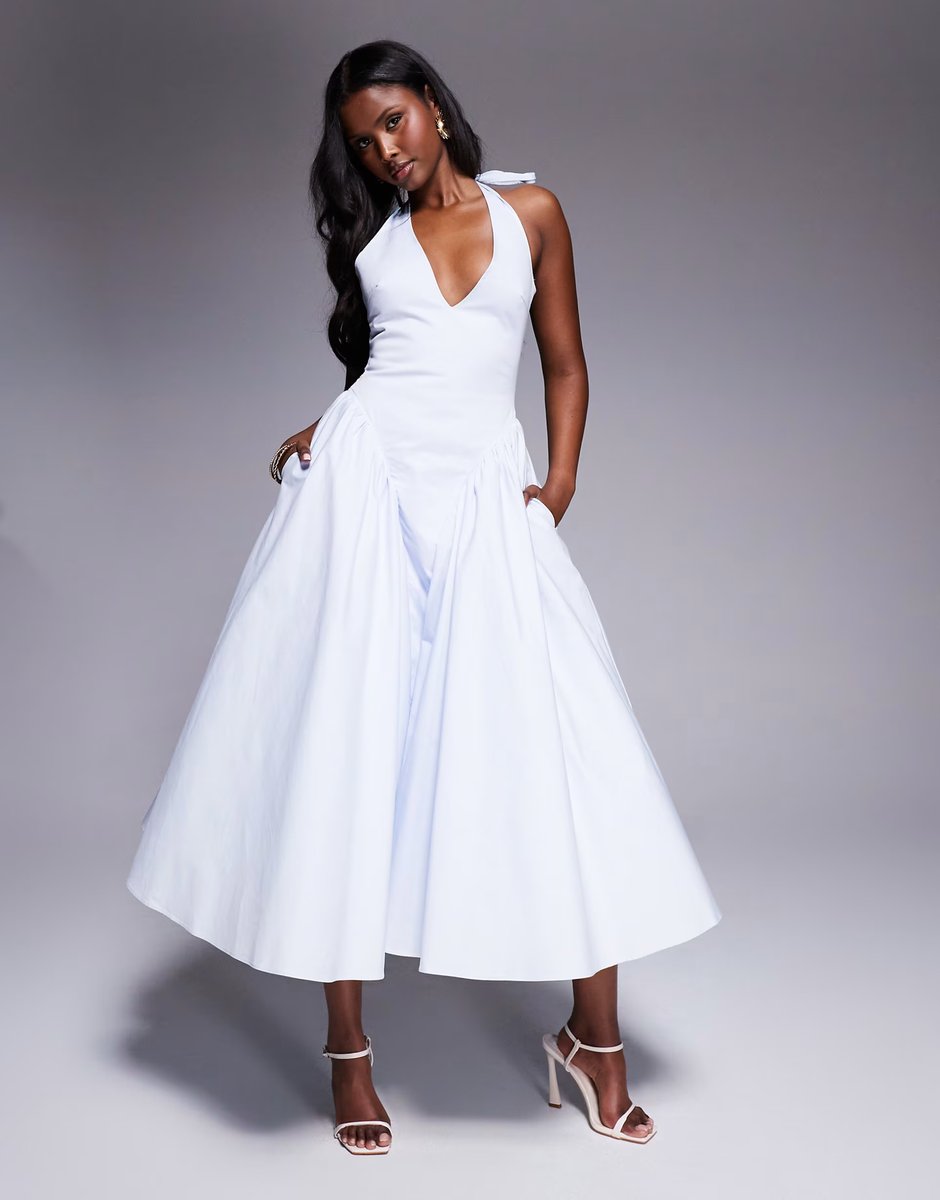 The ASOS House of CB Halter Midi Sundress in Soft Blue is ideal for party, casual, beach.