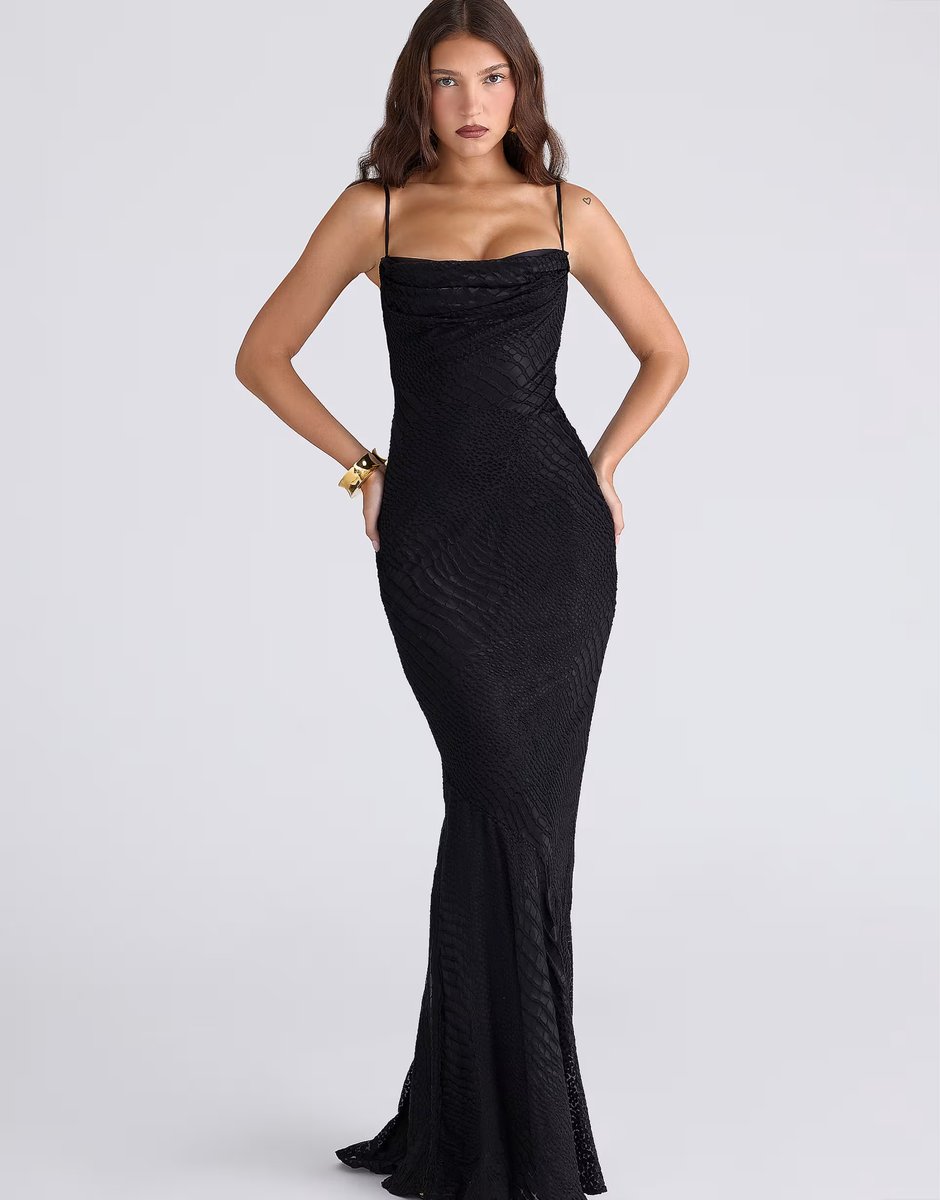 The ASOS House of CB Nalani Satin Maxi Gown in Black is ideal for evening, party.