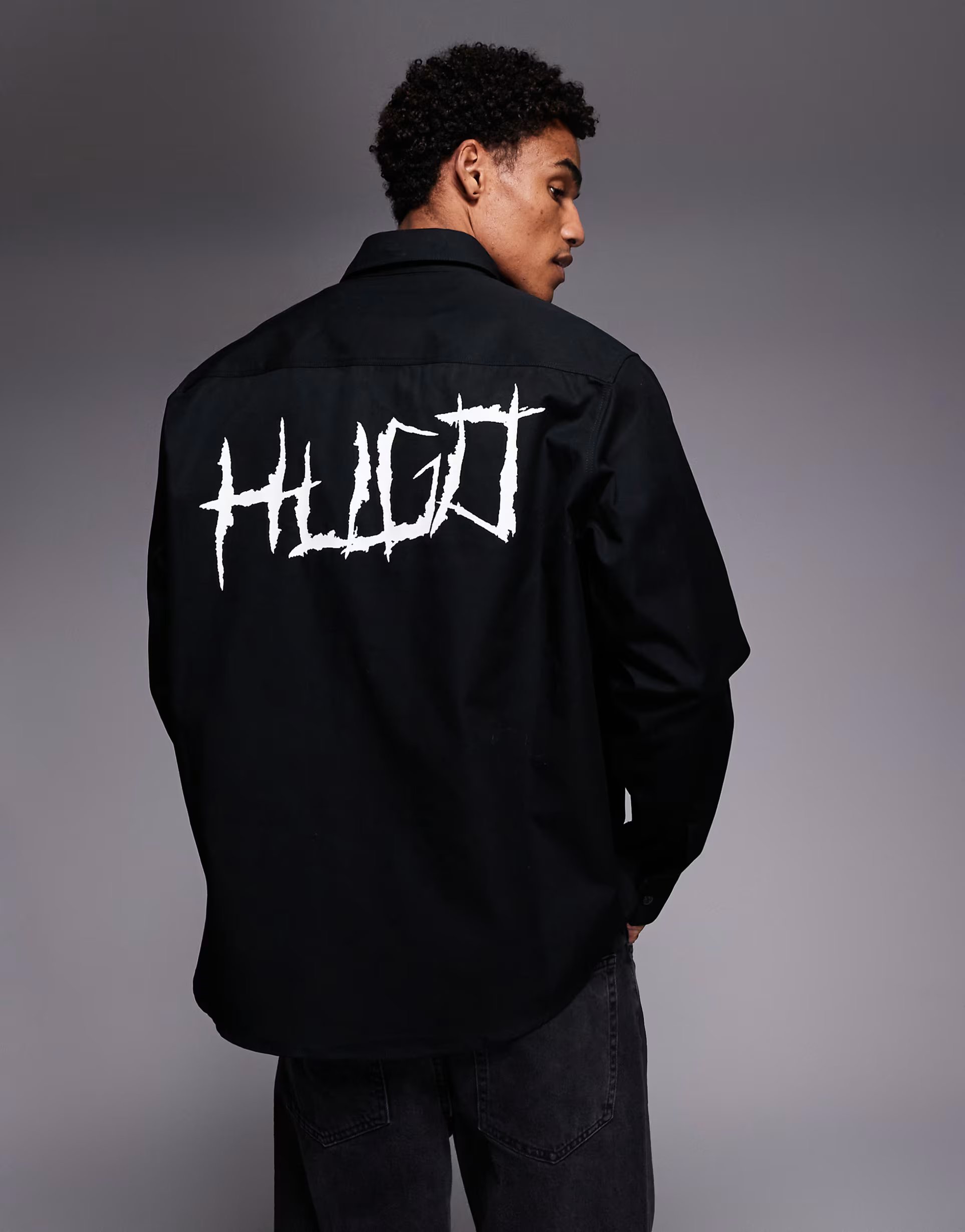 The ASOS Hugo Blue Ebolt Oversized Fit Shirt in Black is ideal for casual.