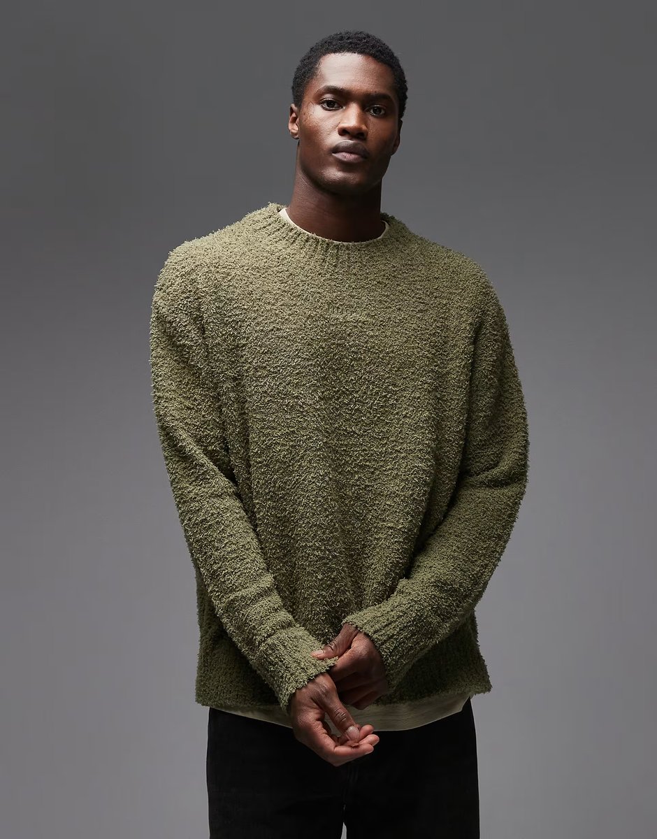 The ASOS Hugo Blue Mid Green Boucle Knit Jumper is available in sizes XXXL, XXL, XL, XS, L, M, S.