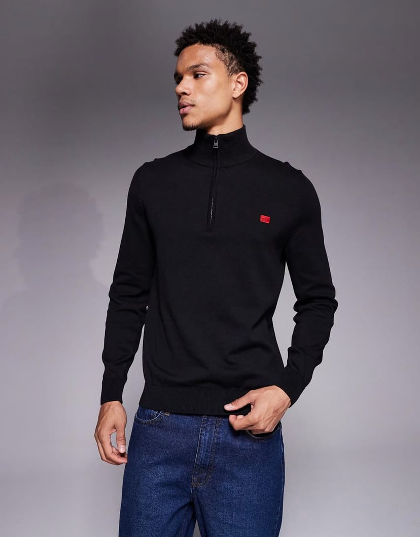 The ASOS HUGO RED Half Zip Knit Jumper in Black is ideal for casual, smart-casual.