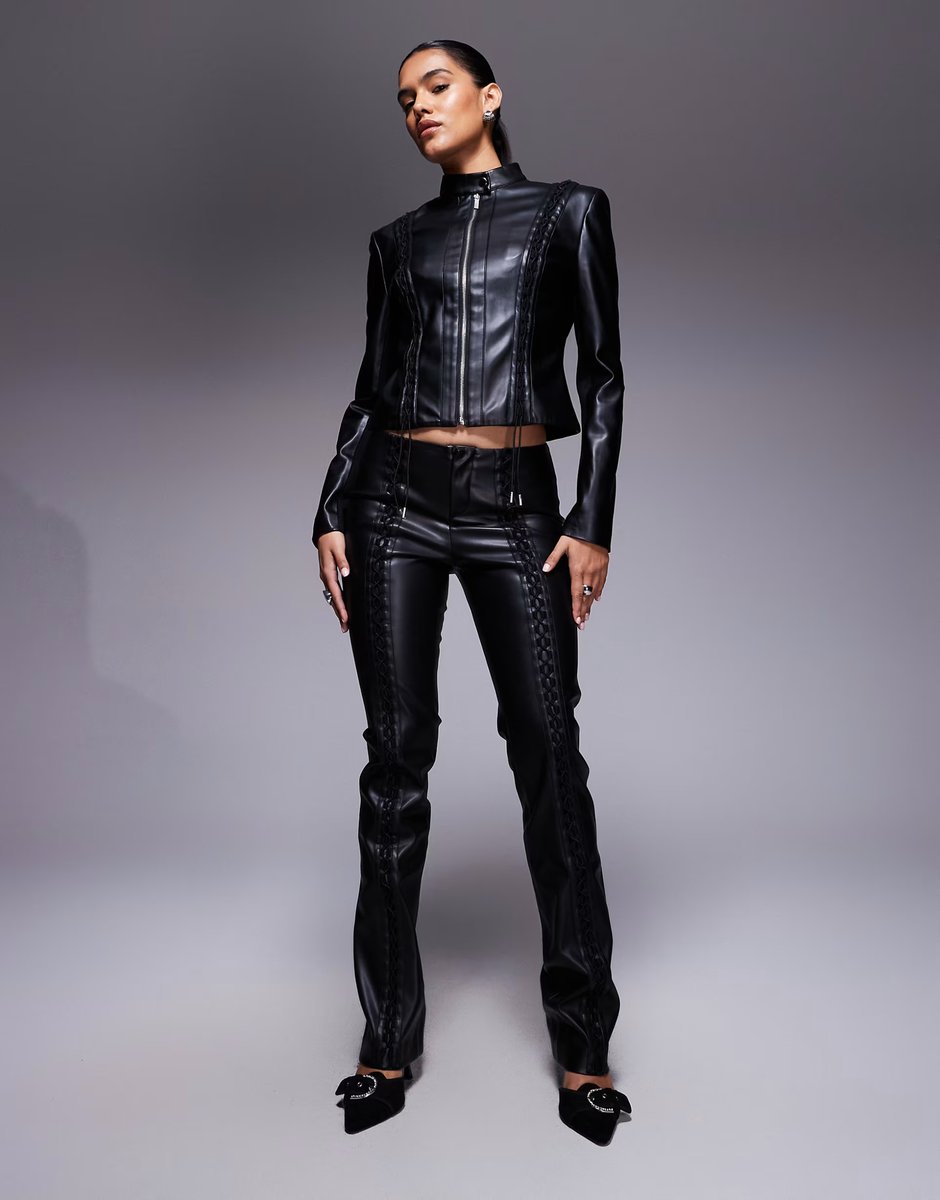 The ASOS I.AM.GIA Leather Look Lace-Up Trouser Co-ord in Black is ideal for evening, casual.