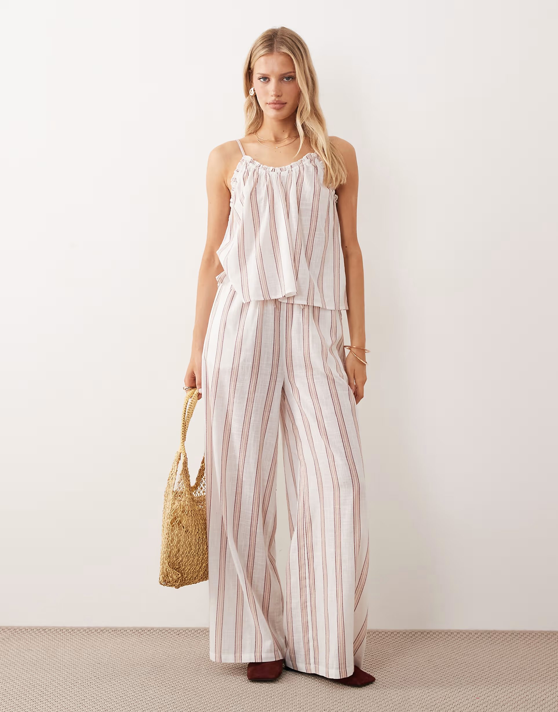 The ASOS Iisla & Bird Beach Trouser Co-ord in Beige Stripe is ideal for casual, beach.