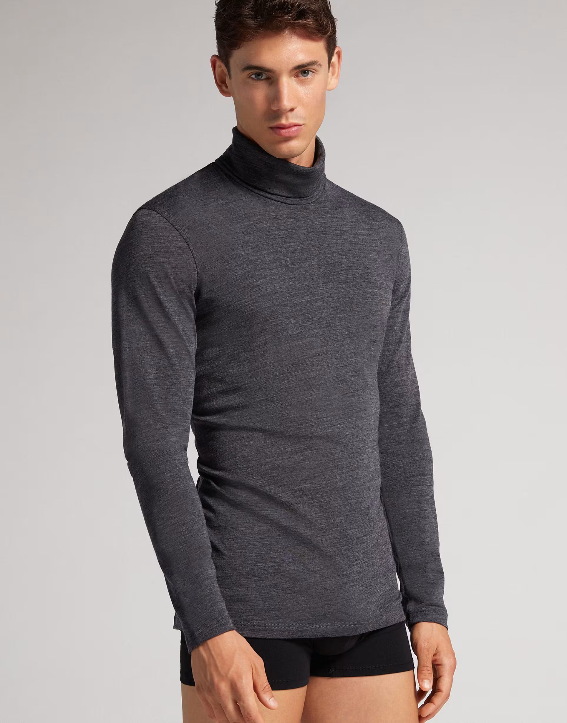 The ASOS Intimissimi High-Neck Turtleneck Top in Charcoal Grey is made from merino wool.