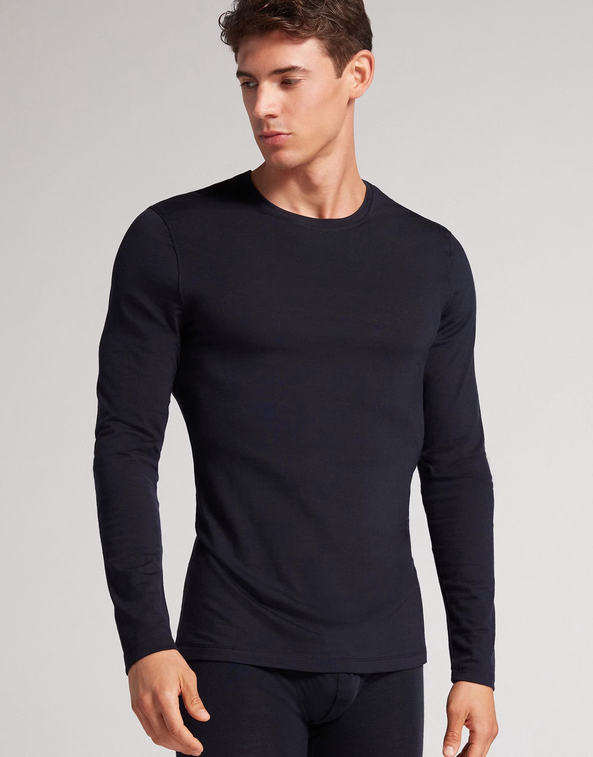 The ASOS Intimissimi Long-Sleeve Round-Neck Top in Midnight Blue is made from merino wool.