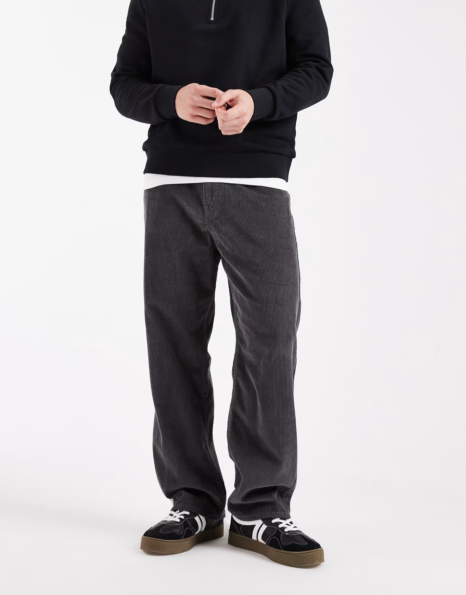 The ASOS Alex Baggy Cord Trousers in Dark Grey is ideal for casual.