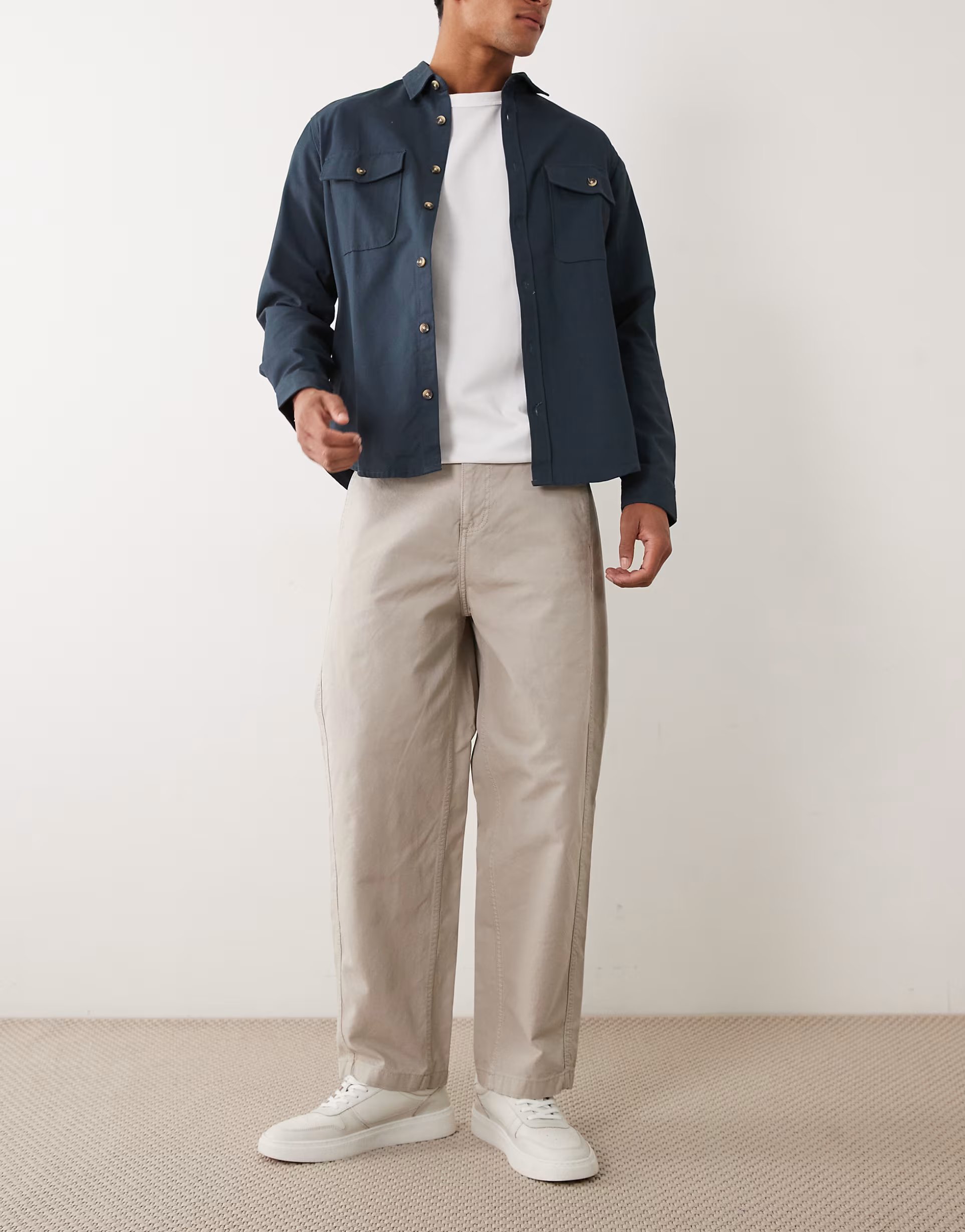 The Jack & Jones barrel chino trouser in light grey offers a straight fit and a standard waistband for a comfortable and versatile option.