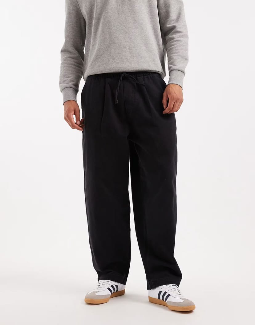 Jack & Jones Barrel Fit Drawstring Trouser in Black. The go-to trouser for everyday wear, designed with barrel fit, drawstring waistband, and slim fit. Made from a durable fabric for lasting wear.