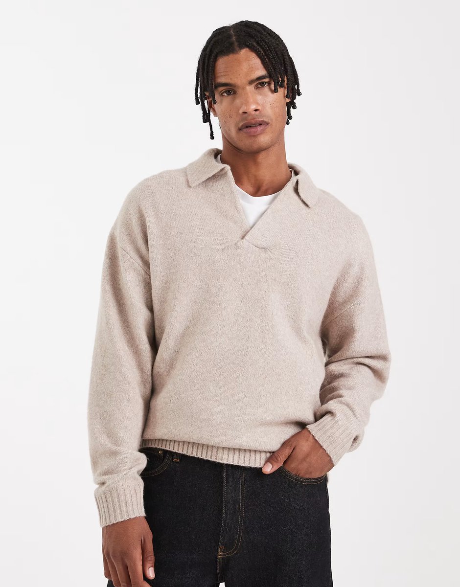 The ASOS Jack & Jones Boucle Polo Jumper in Cream is ideal for casual.