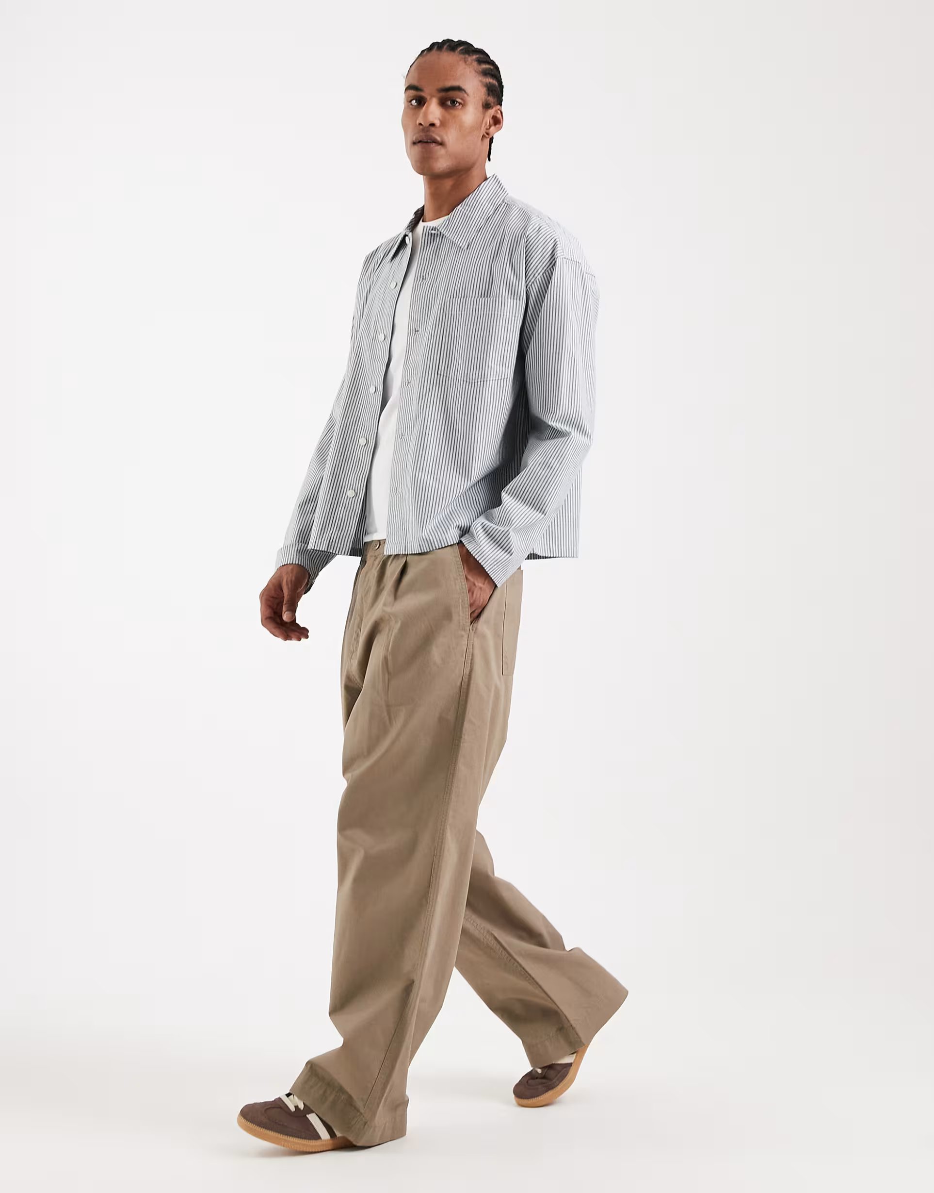 The ASOS Jack & Jones Striped Boxy Long Sleeve Shirt in Navy is ideal for casual, smart-casual.