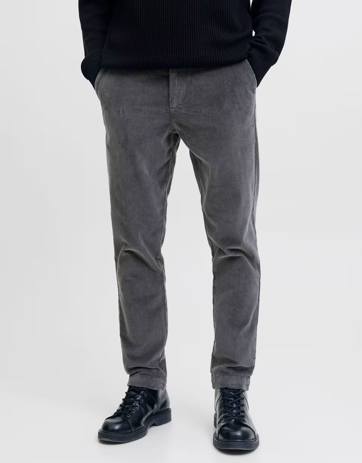 Designed with charcoal grey corduroy fabric, these Jack & Jones trousers offer a comfortable and stylish option for casual wear. The straight leg silhouette is perfect for pairing with a variety of tops.