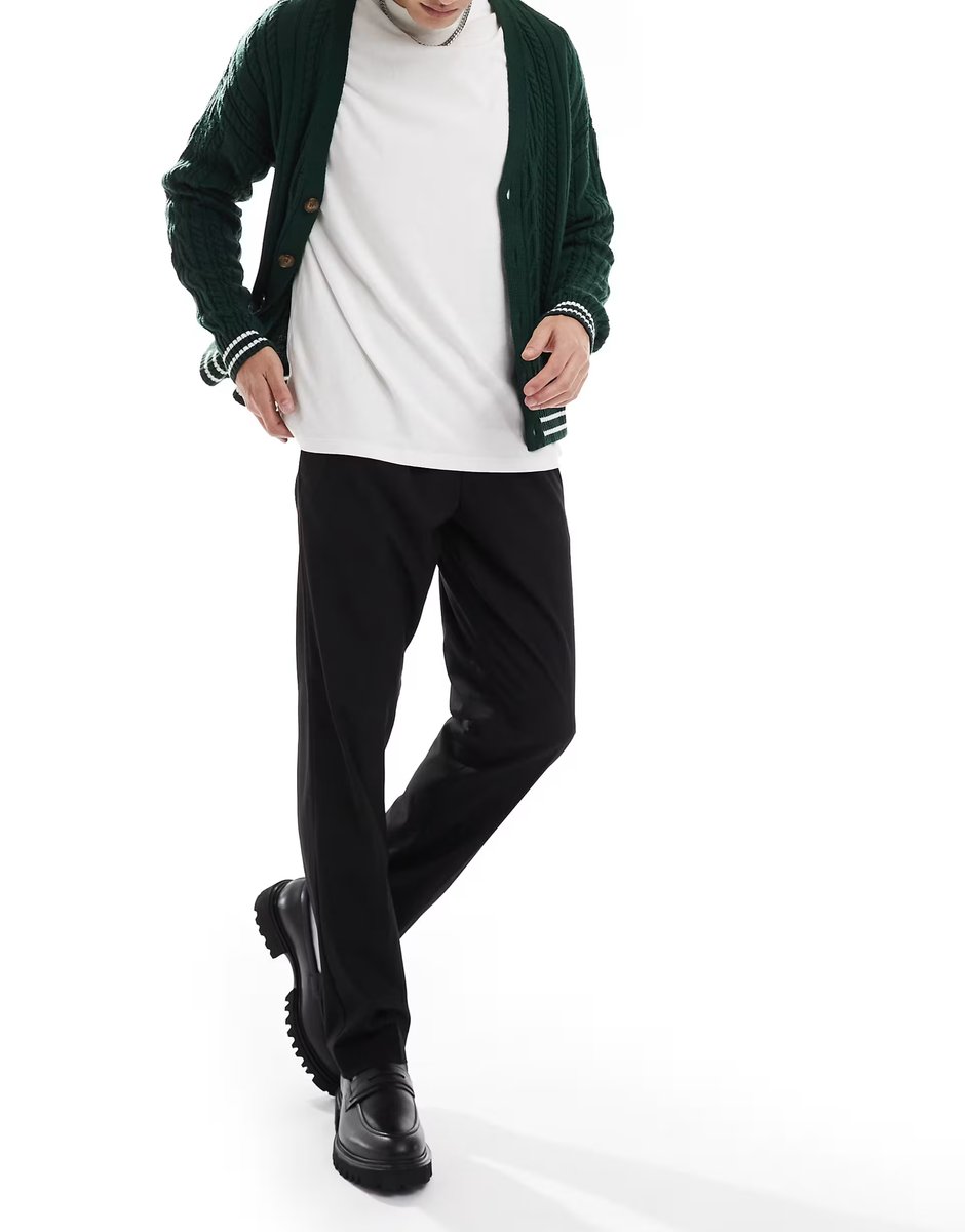 The Jack & Jones Black Drawstring Smart Tapered Loose Trousers is ideal for work, business, smart-casual.