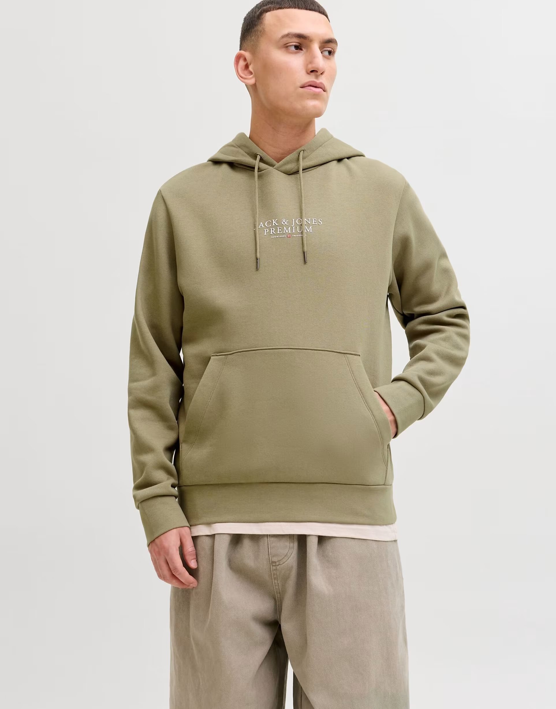 The ASOS Jack & Jones Hoodie in Moonbeam is available in sizes XXXL, XXL, XL, XS, L, M, S.