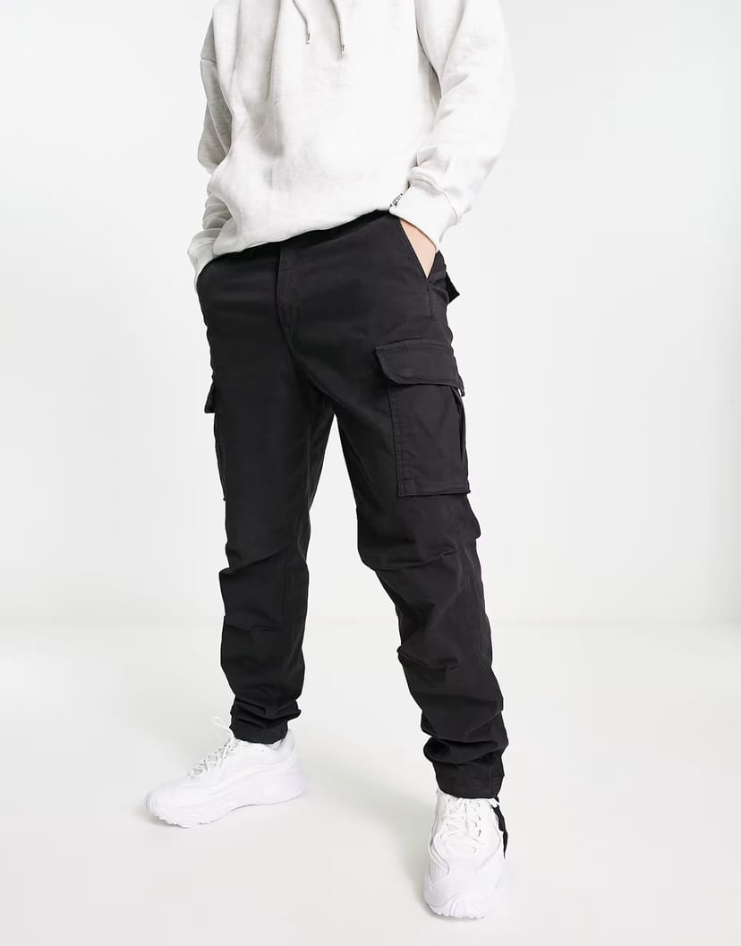 The ASOS Jack & Jones Intelligence Cargo Trouser in Black is ideal for casual.