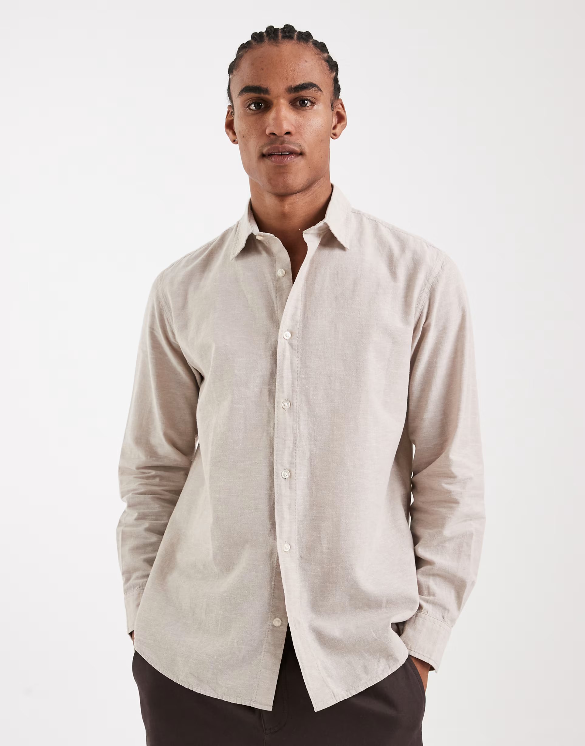 The ASOS Jack & Jones Linen Blend Regular Shirt in Beige is ideal for work, smart-casual, casual.