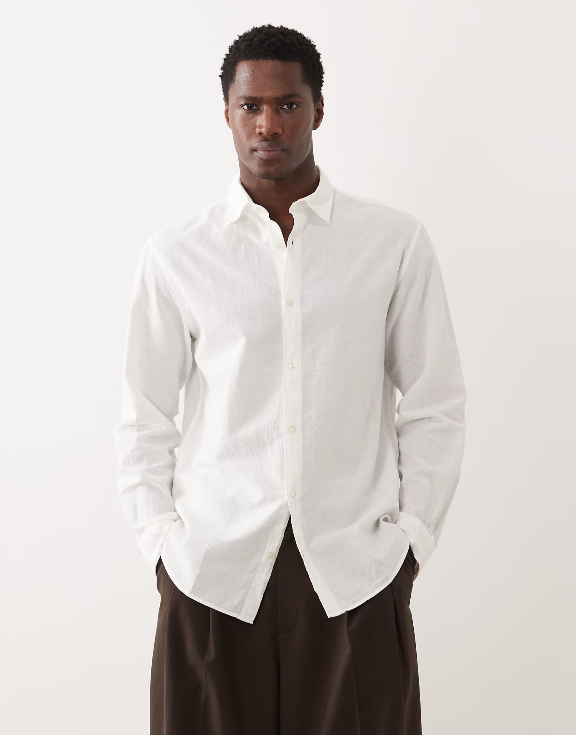 The ASOS Jack & Jones Linen Blend Regular Shirt in White is ideal for casual, smart-casual.