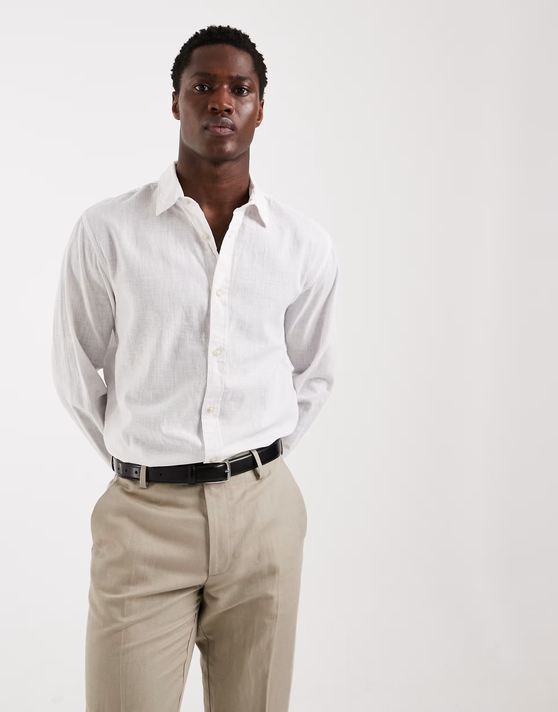 The ASOS Jack & Jones Linen Blend Shirt in White is ideal for business casual, casual.