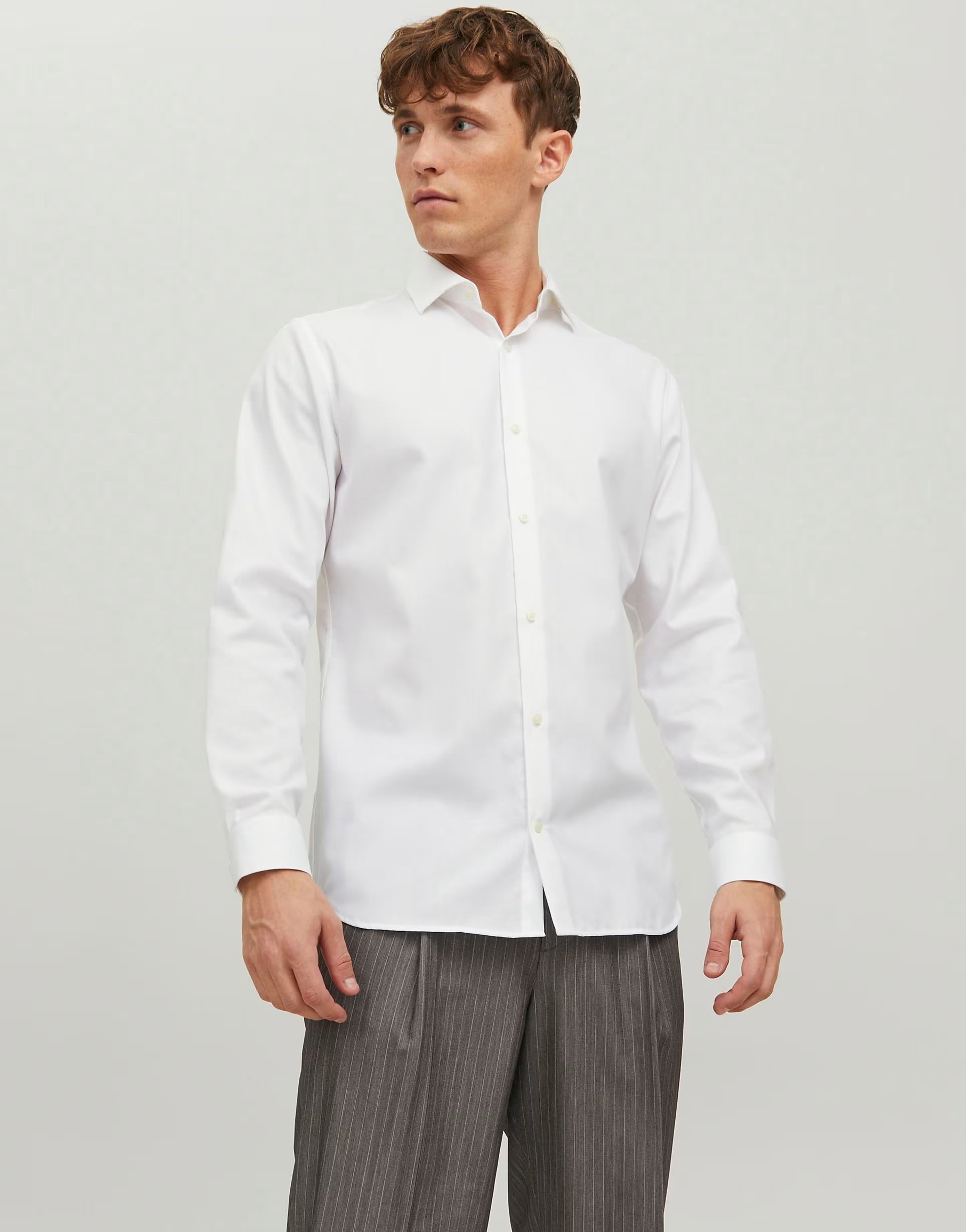 This white long sleeve shirt from Jack & Jones is a versatile addition to any wardrobe. Featuring a button-down front, it offers a classic look suitable for various occasions.