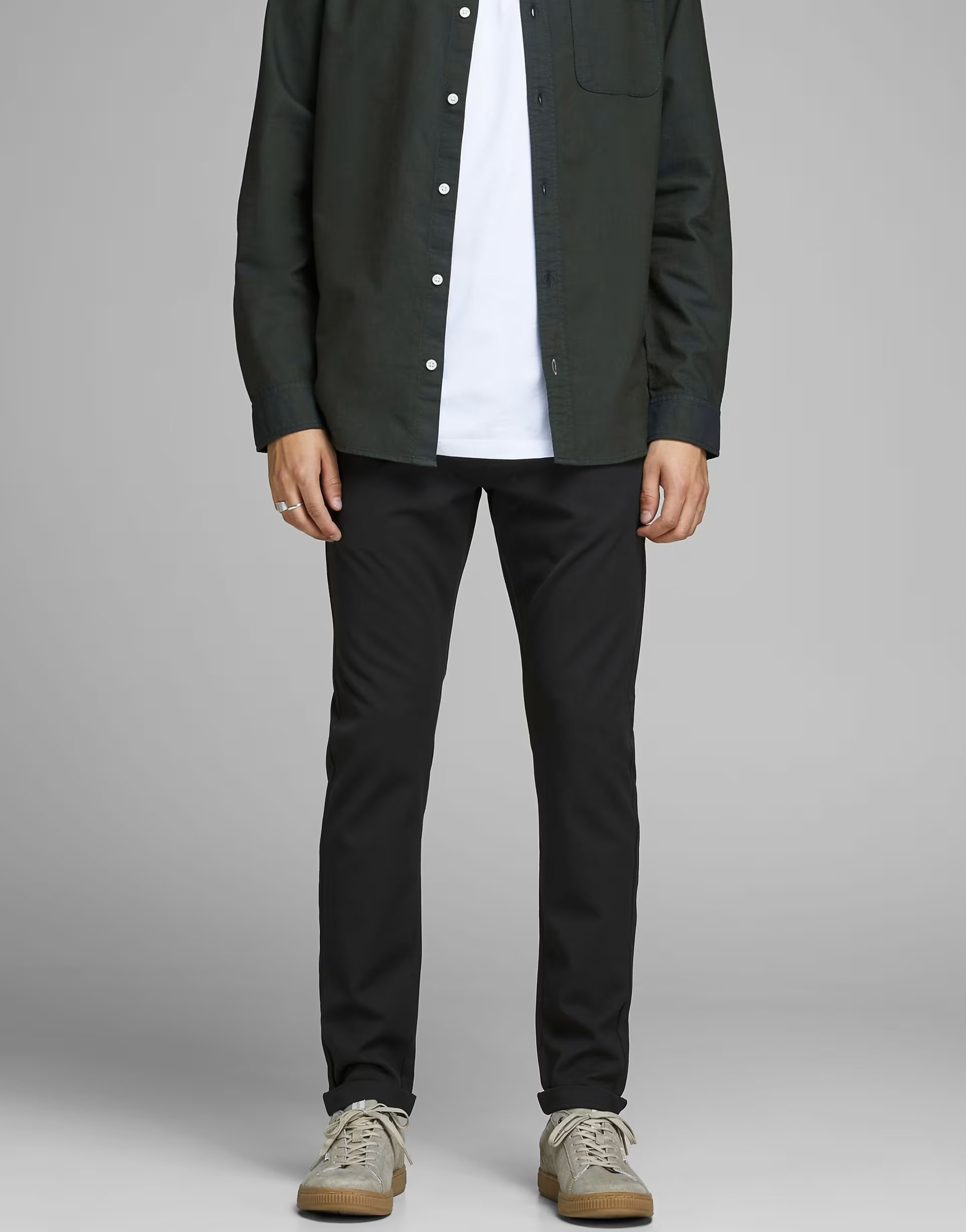 Crafted with a modern fit, the Jack & Jones Marco tapered pant in black features a sleek design perfect for both work and casual wear.