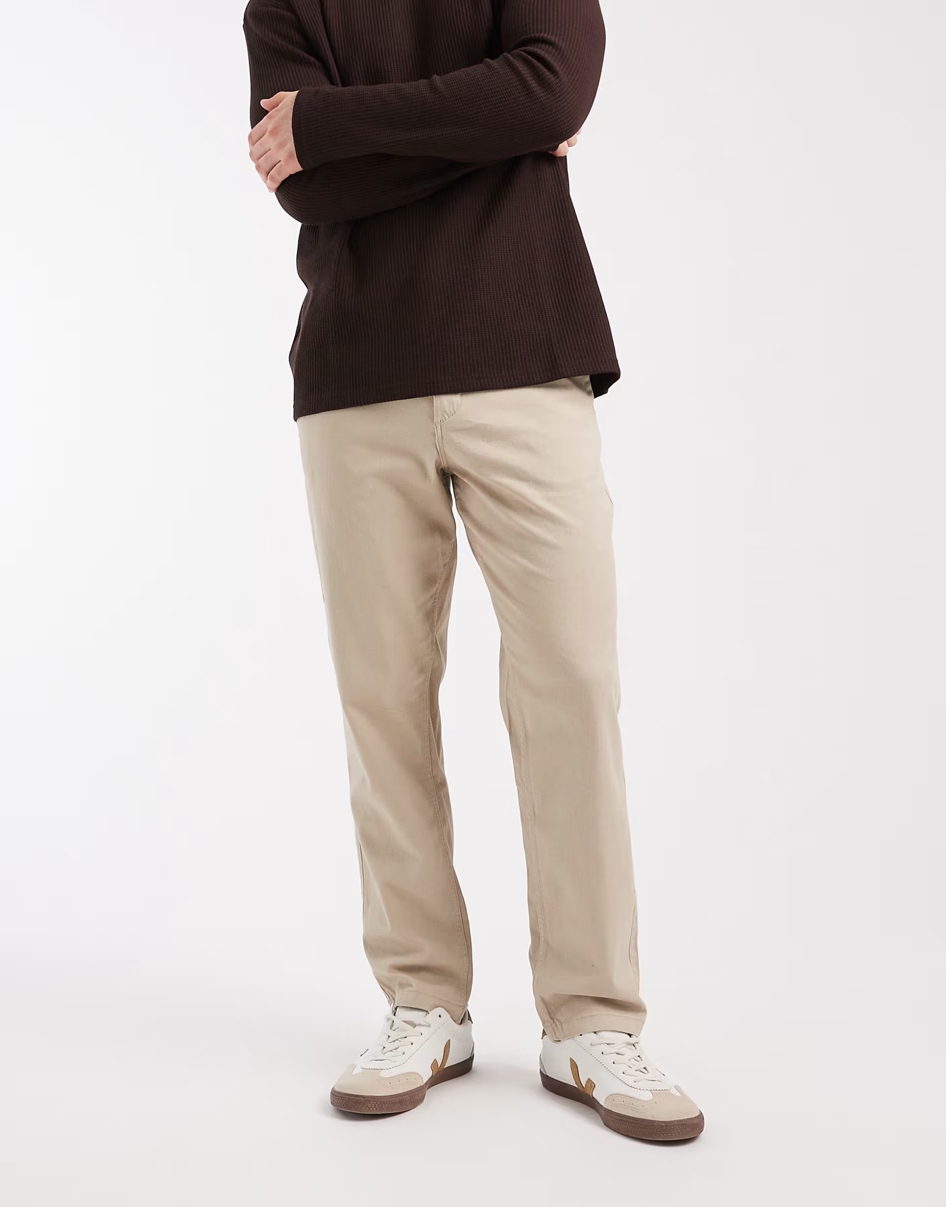 The ASOS Jack & Jones Regular Chinos in Beige is made from cotton, polyester.