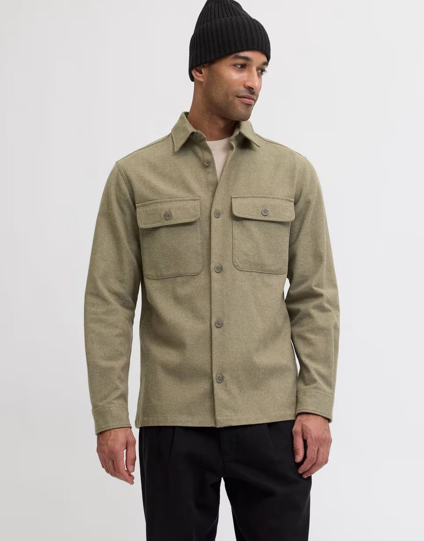 The ASOS Jack & Jones Overshirt in Aloe is ideal for work, smart-casual.