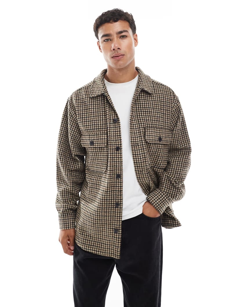 The ASOS Jack & Jones Tweed Check Overshirt in Delicioso is ideal for casual, smart-casual, work.