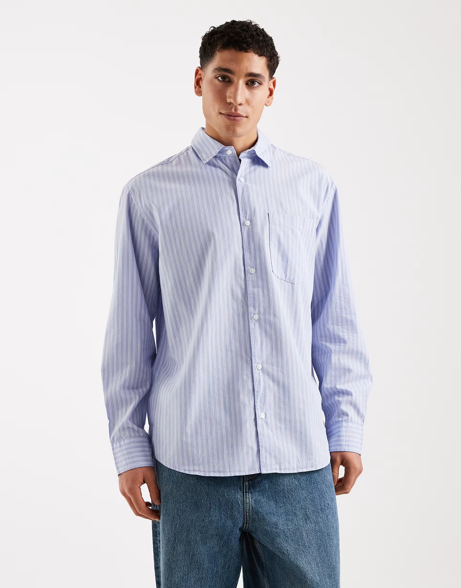 The ASOS Jack & Jones Striped Poplin Shirt in Blue is available in sizes XXXL, XXL, XL, XS, L, M, S.