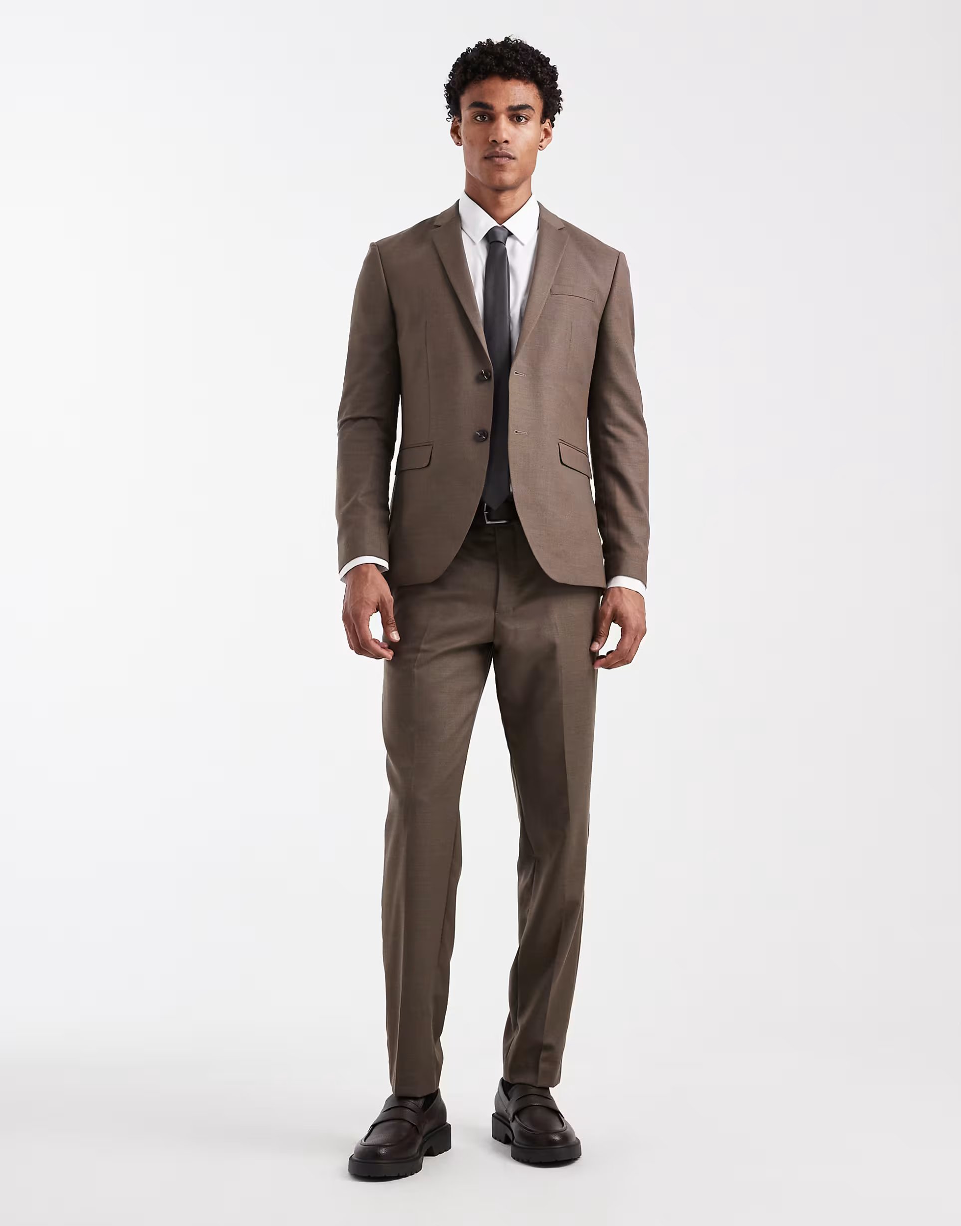 The ASOS Jack & Jones Super Slim Tailored Trousers in Brown is made from Not specified.