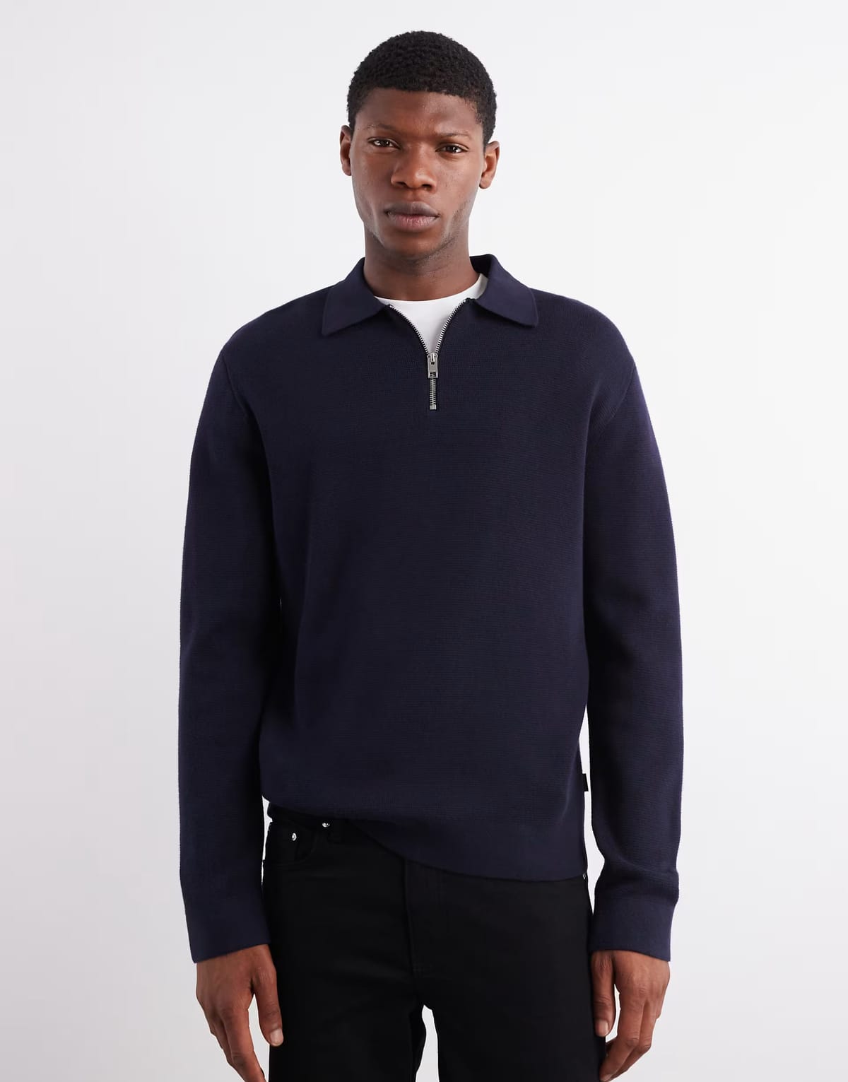 The ASOS Jack & Jones Long Sleeve Polo with Quarter Zip in Navy is ideal for smart-casual, work, casual.