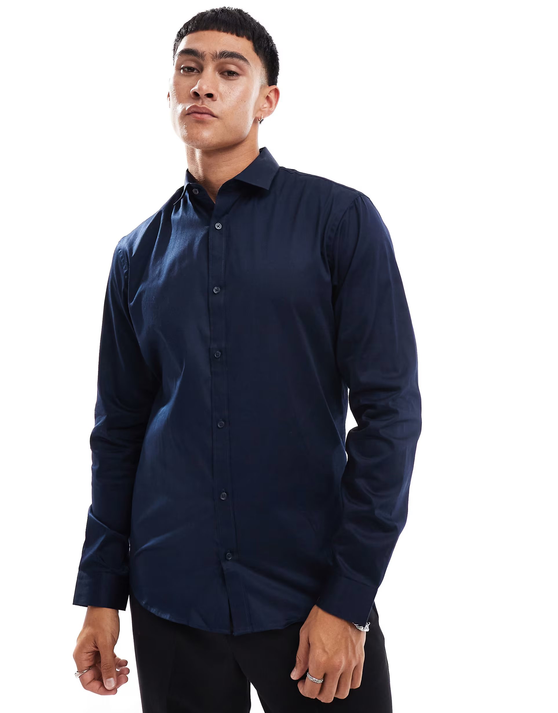 The ASOS Jack & Jones Premium Slim Fit Navy Shirt is ideal for work, business, casual.