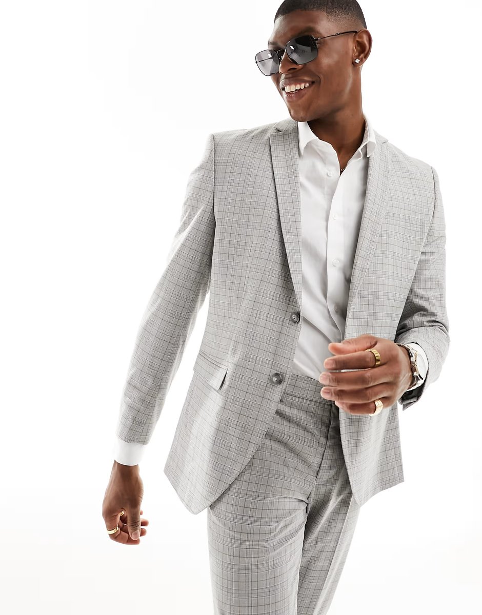 The ASOS Jack & Jones Premium Slim Fit Beige Check Jacket is ideal for work, business.