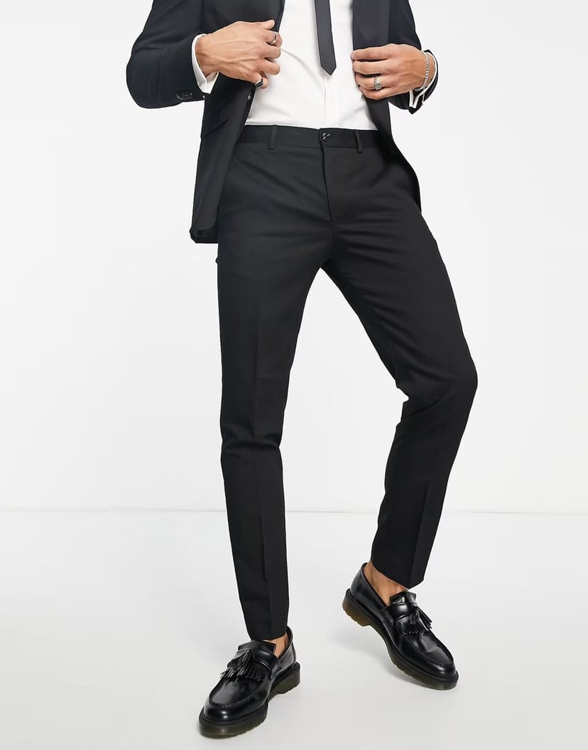 The ASOS Jack & Jones Premium Slim Suit Trousers in Black is available in sizes XXXL, XXL, XL, XS, L, M, S.