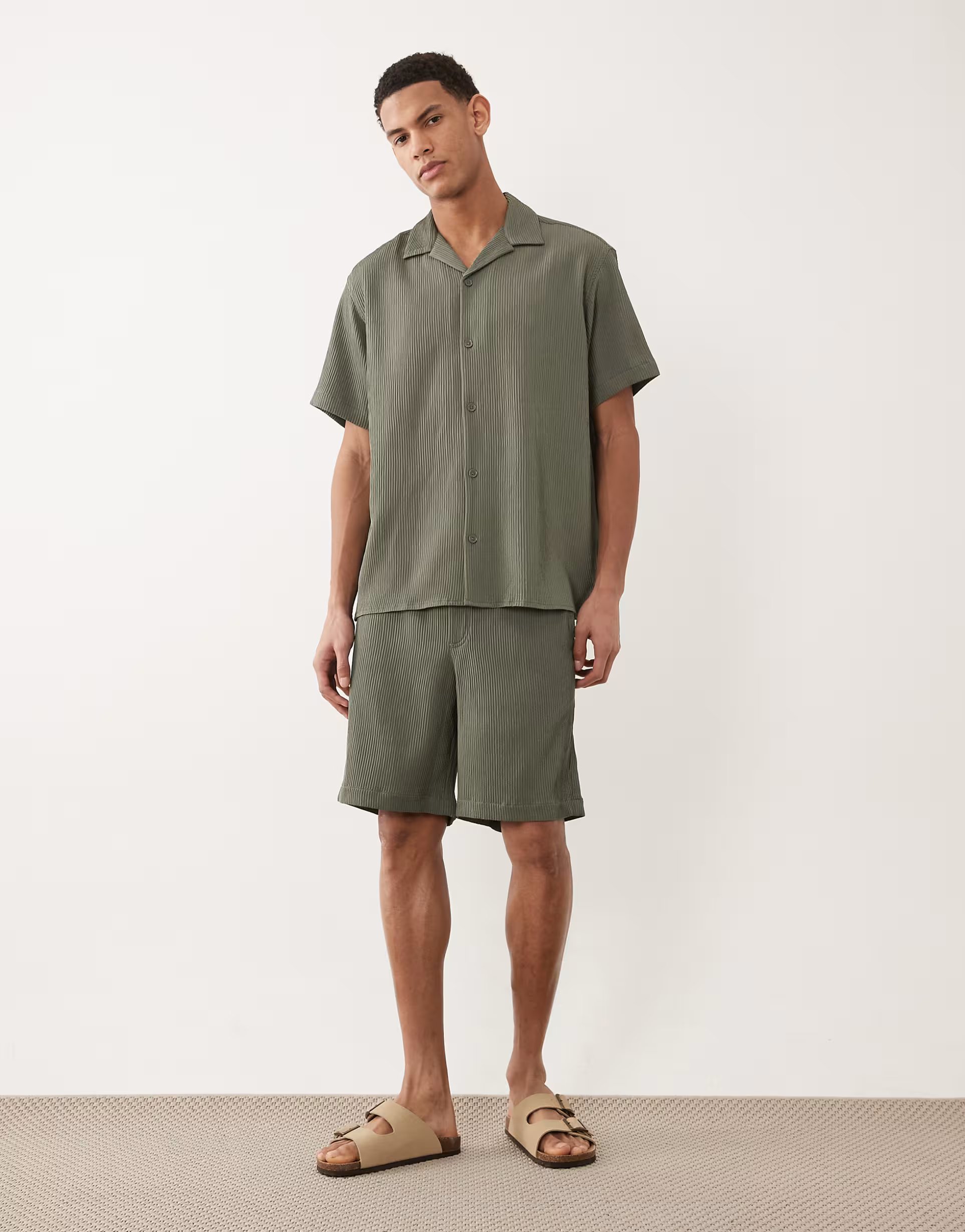 The ASOS Jack & Jones Khaki Resort Shirt and Shorts Set is ideal for casual, smart-casual.