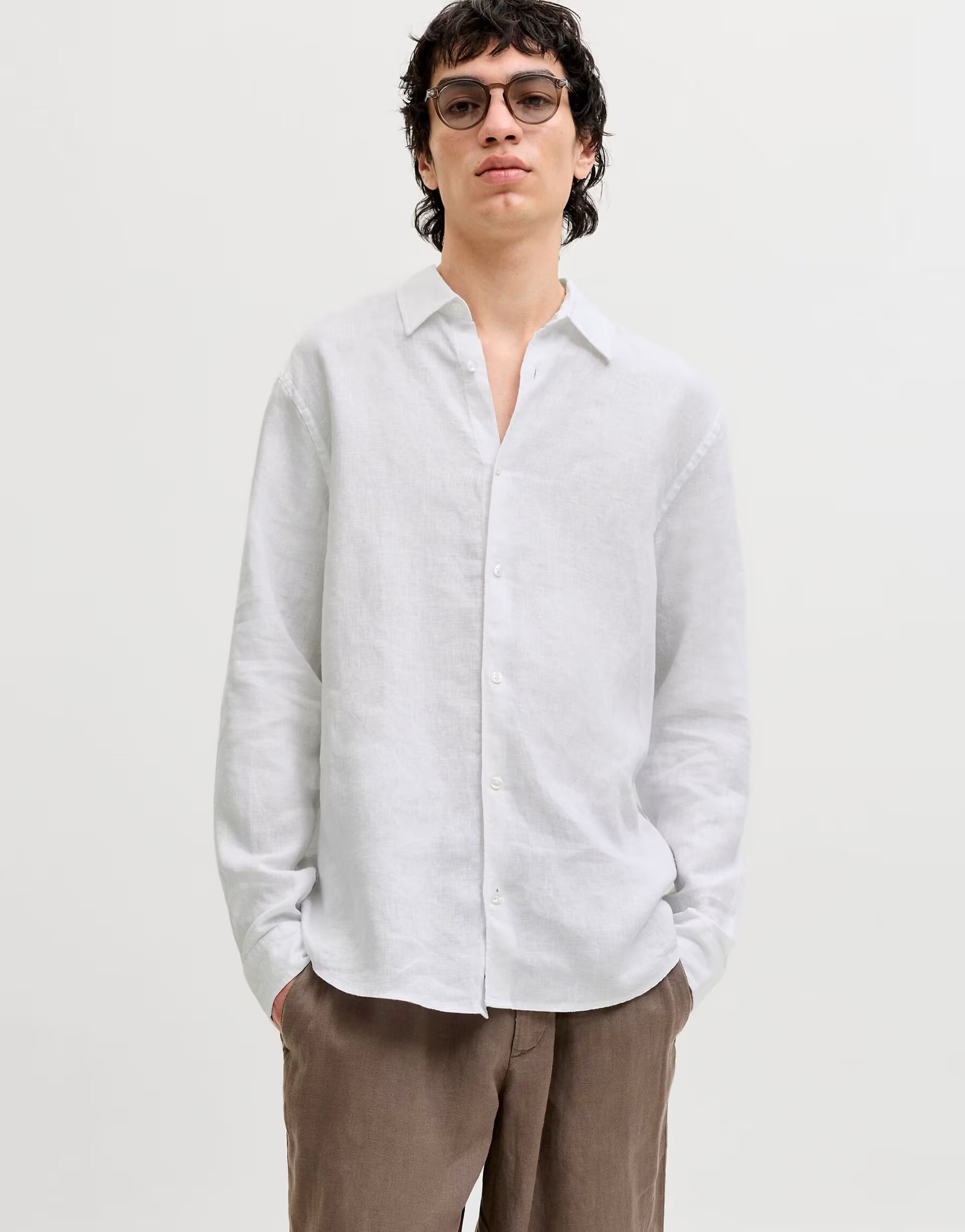 This bright white shirt from Jack & Jones is perfect for a button-up collar, long sleeve, regular fit, button closure.