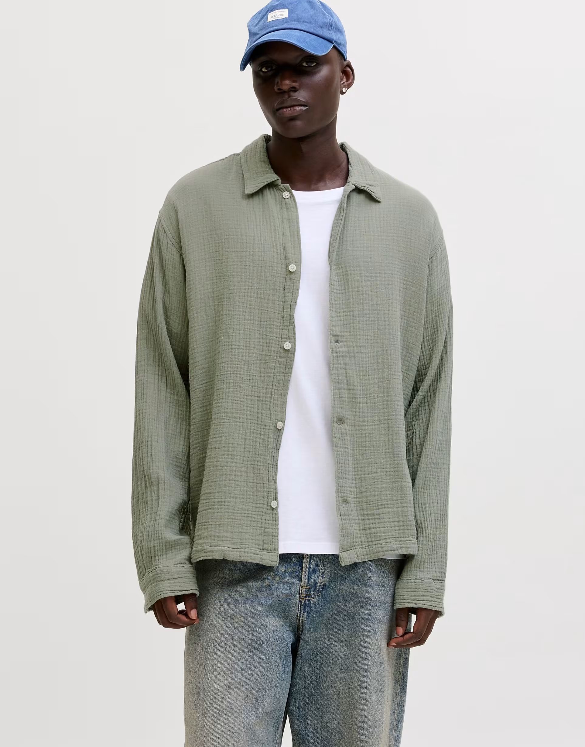 The ASOS Jack & Jones Seagrass Shirt in Seagrass is made from seagrass.