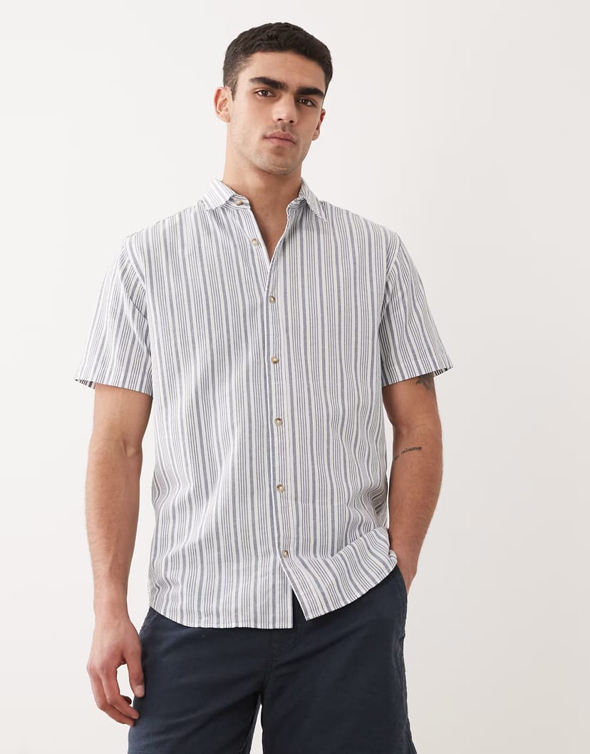 The ASOS Jack & Jones Striped Oxford Shirt in Blue is ideal for casual, smart-casual.