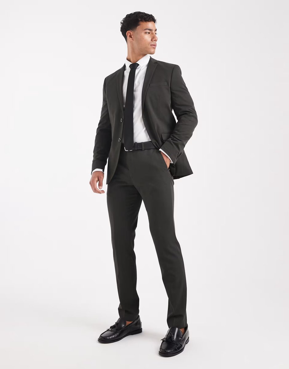 The ASOS Jack & Jones Super Slim Suit Trousers in Dark Green is available in sizes XXXL, XXL, XL, XS, L, M, S.