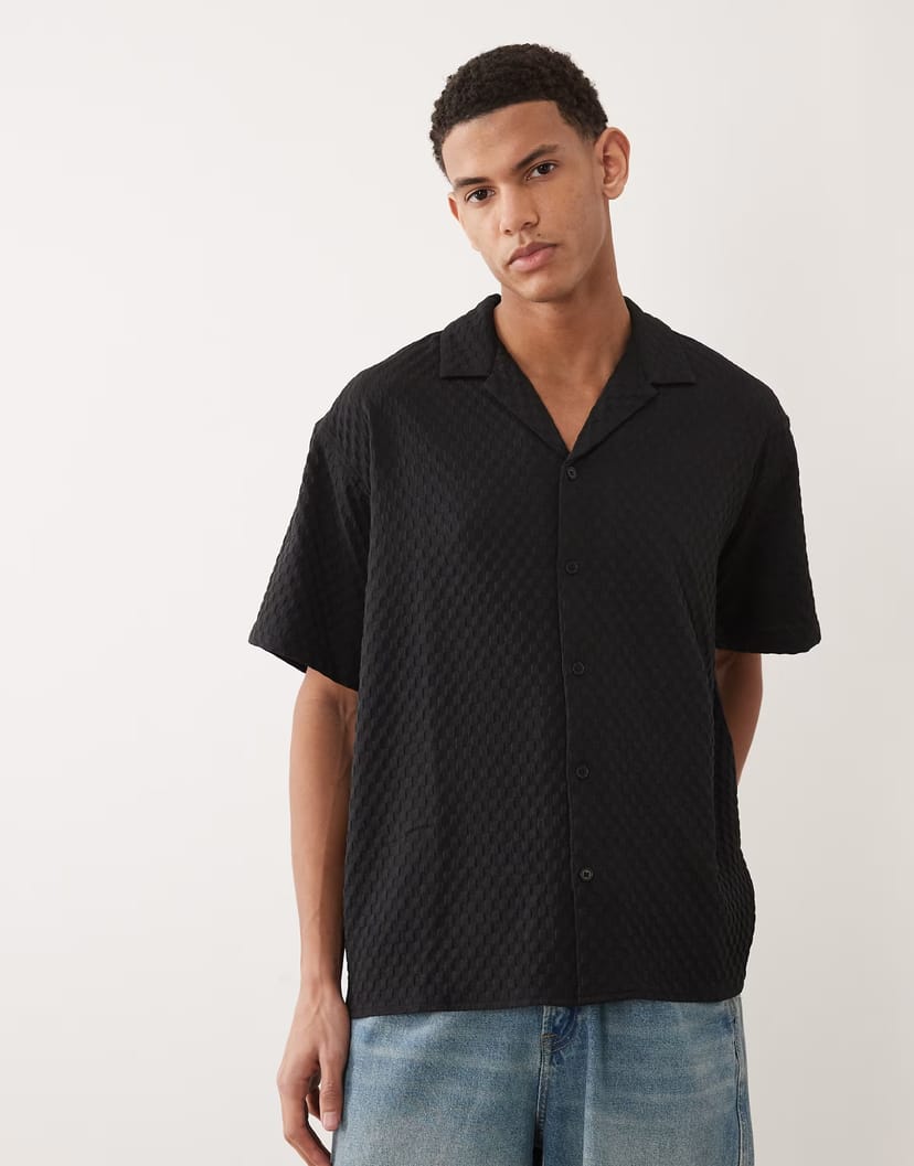The Jack & Jones Textured Resort Shirt in Black is available in sizes XXXL, XXL, XL, XS, L, M, S.