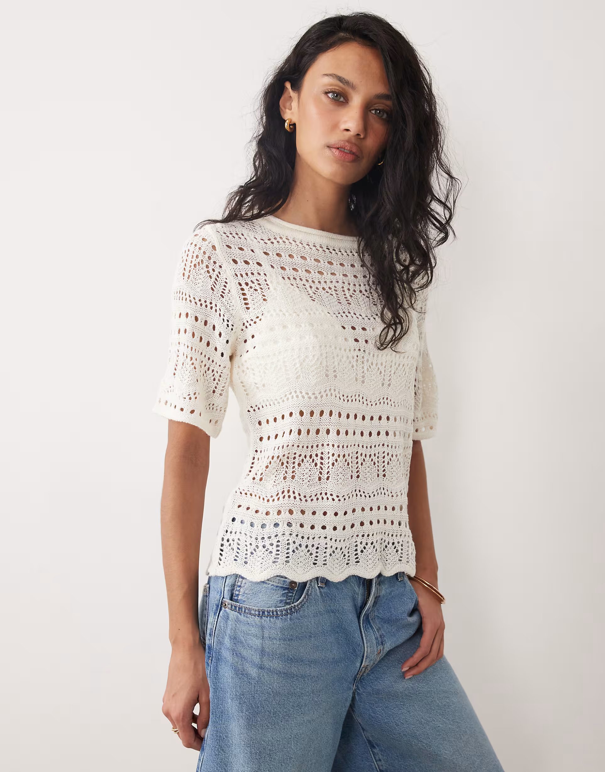 The ASOS Crochet Open Knit Half Sleeve Top in Cream is ideal for casual.
