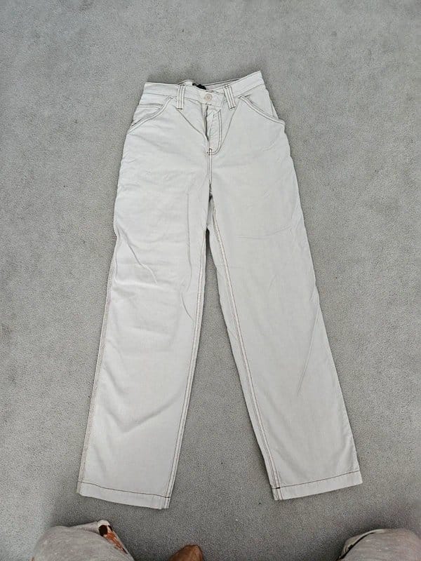 Stylish cargo pants by ASOS in a soft cream colour. Made from thin jean material, these pants feature a relaxed fit and multiple pockets for practicality. Perfect for casual outings or layering under dresses.