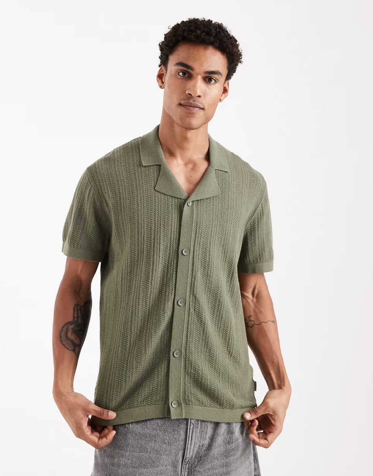 The ASOS JJ Rebel Knitted Shirt in Green is ideal for casual.