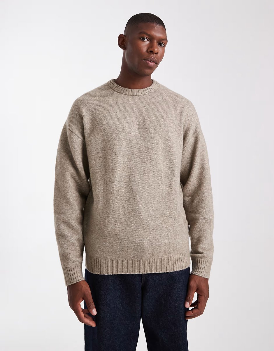 The ASOS JJ Rebel Fluffy Crew Neck Jumper in Beige is ideal for casual.