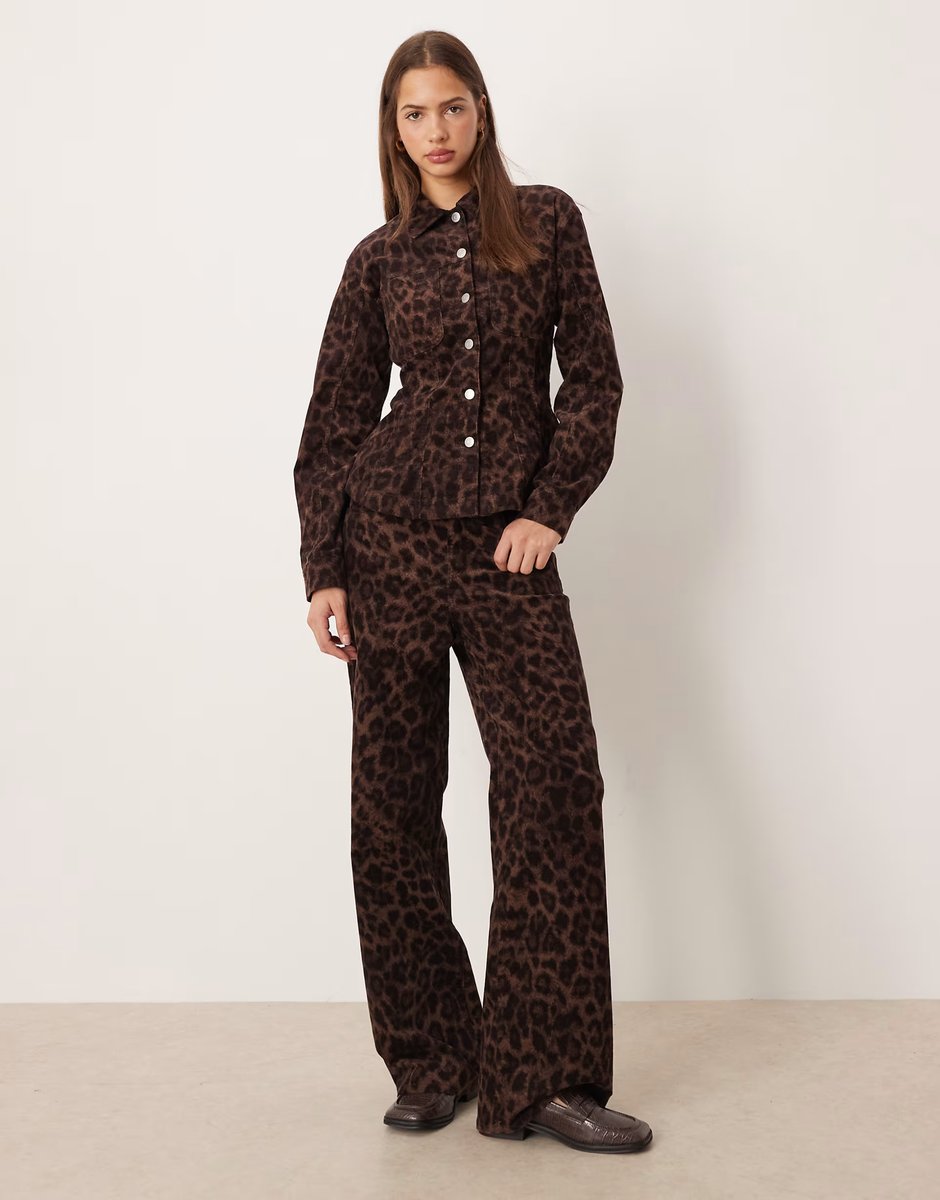 The ASOS JJXX Leopard Print Wide Leg Trousers in Dark is ideal for casual, evening.