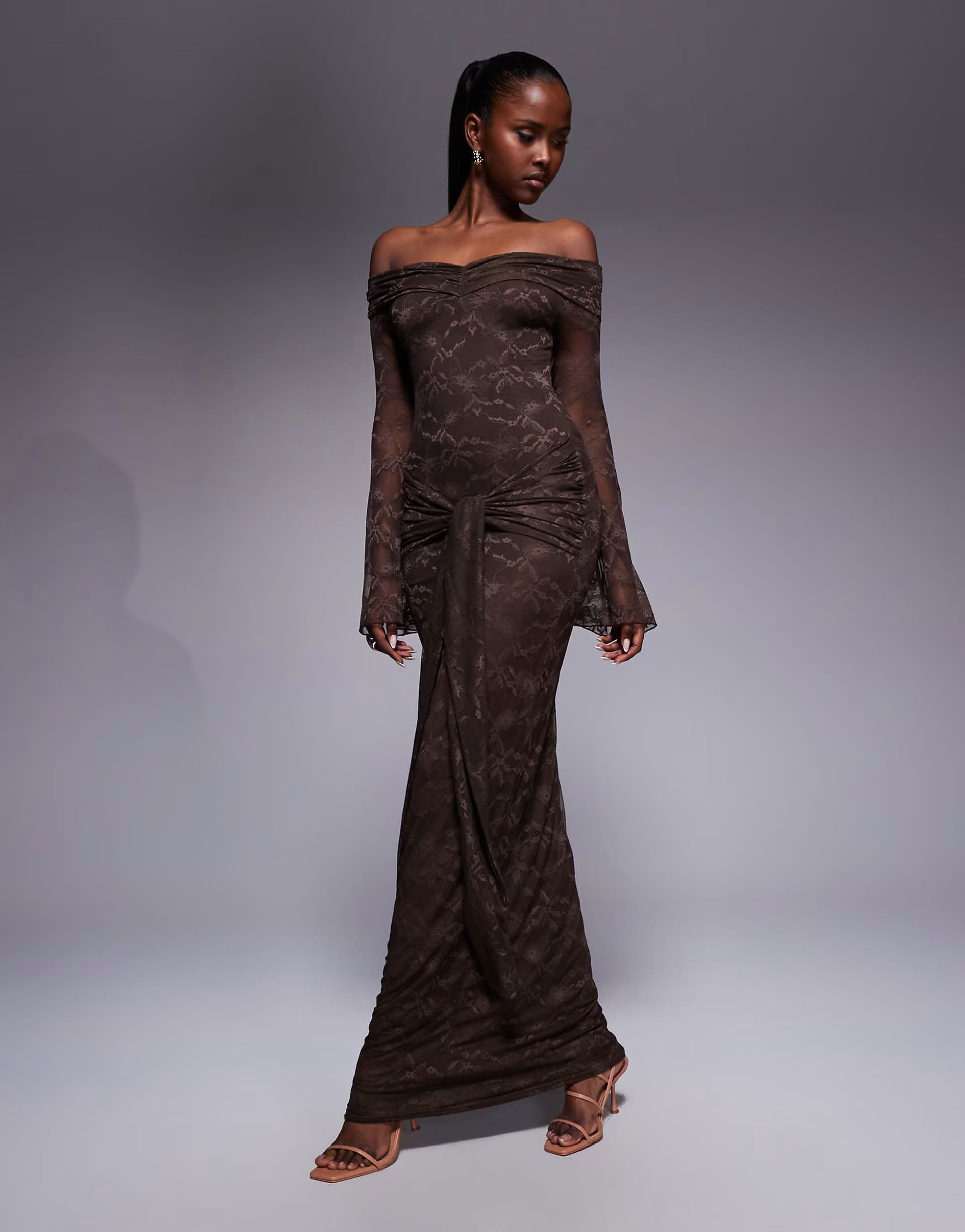 ASOSASOS Chocolate Lace Bardot Maxi Dress