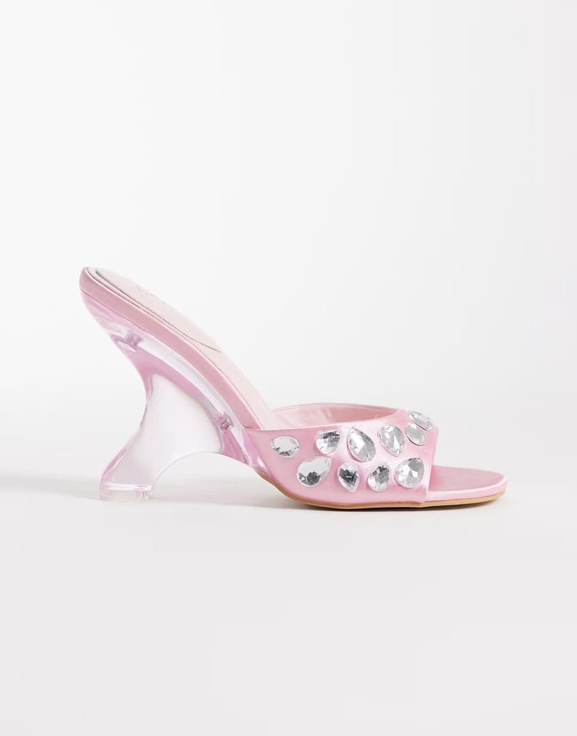 The ASOS Pink Embellished Satin Heeled Sandals is ideal for evening, party, special occasion.