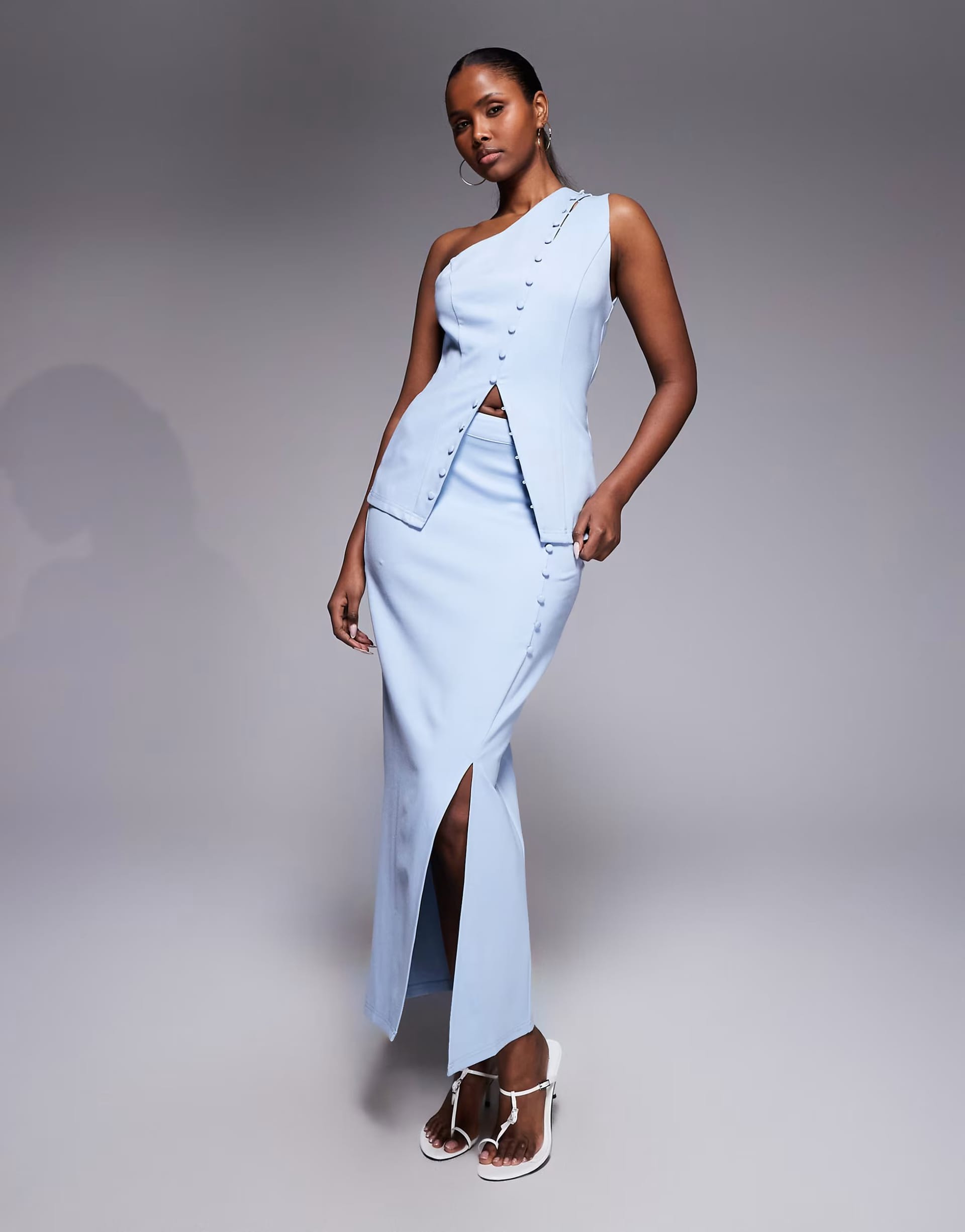 ASOSASOS Pastel Blue Structured Split Front Maxi Skirt Co-ord