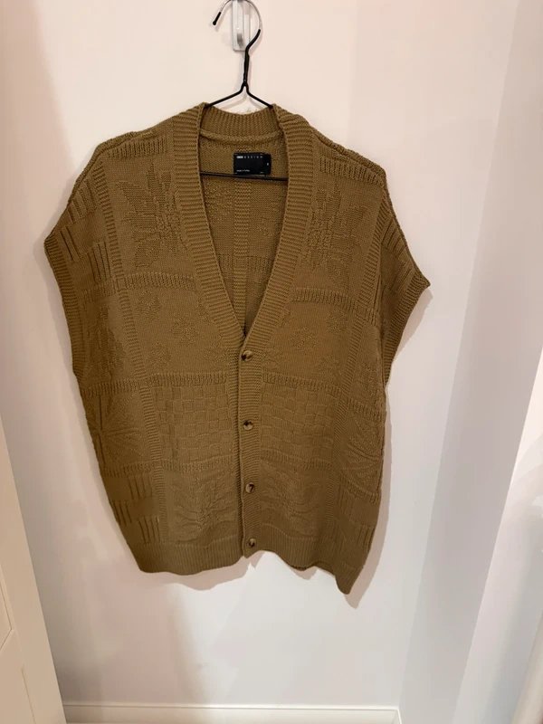 The ASOS Brown Knitted Sweater Vest is available in sizes M.