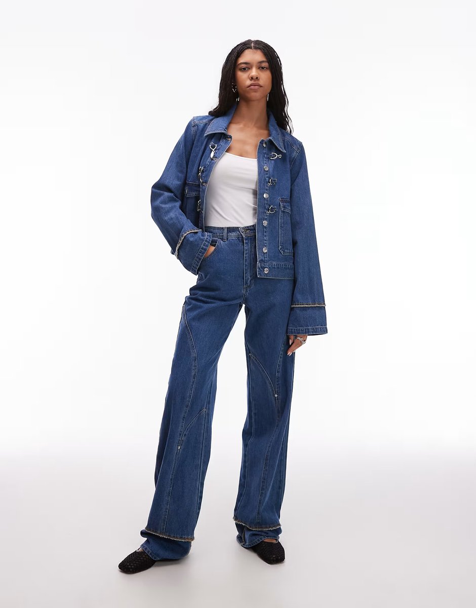 The ASOS Dallas Turn-Up Wide Leg Jeans in Indigo Co-Ord is ideal for casual, smart-casual.