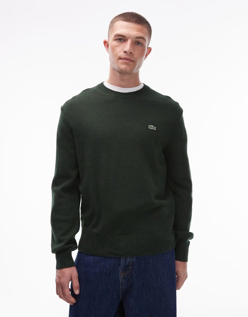 The ASOS Lacoste Crew Neck Jumper in Green is available in sizes XXXL, XXL, XL, XS, L, M, S.