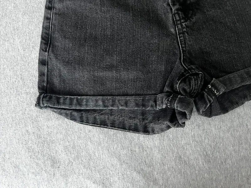 Stylish ASOS black denim high-waisted shorts with a distressed finish and drawstring waist. Perfect for casual outings or summer events.